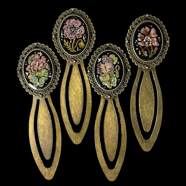掌サイズのミニ原画を閉じ込めたブックマーカーです。 〈原画作品〉 アンティーク紙にペン、鉛筆、透明水彩 レジンコーティング 原画サイズ:20×20mm パーツサイズ:30×95mm 台湾で買い付けたパーツを使用しています。 2025年制作 〈アンティーク紙について〉 バイヤーが直接買い付けてきた、ベルギーの片田舎の小さな協会で見つけた約130年以上前の1800〜1900'sアンティーク紙に描いております。 ※レジンコーティングはアンティーク紙の性質上、気泡が入りやすくなっております。 ※お使いのモニター画面や光源による実物との若干の色の違いが御座います。 ご了承下さいますようお願い致します。