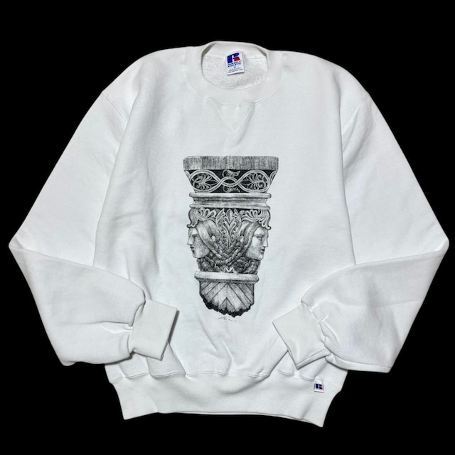 セレクトした古着に、1つ1つ作家本人がシルクスクリーンを行っています。 ※こちらのアイテムはヴィンテージ古着を使用しています。 古着ならではの、ダメージやフェード感が可愛いと感じたアイテムをセレクトしている物もある為、 古着がお好きな方、ダメージや使用感が気にならない方にお勧めいたします。 【ダメージについて】 特に目立つダメージは、ありません。 お色は、写真1枚目が1番近しいです。 【実寸】 着丈: 63cm 肩幅: 50cm 身幅: 52cm 袖丈: 65cm 【表記詳細】 1990's ヴィンテージ RUSSELL ATHLETIC コットン 50% ポリエステル 50% アメリカ製 サイズ M 【注意事項】ご購入前に必ずご確認下さい。 ※ダメージ以外にも古着特有の使用感がある場合も御座います。 可能な限りお手入れをしておりますが、時代を越えて今の時代まで残ってきた古いもの達という事を予めご理解頂けますと幸いです。 ※採寸、検品、お手入れは、全て一点一点手作業にて行っている為、多少の採寸誤差や傷等の見逃しがある可能性があります。 サイズは誤差が生じる可能性がありますので、あくまでも目安として考えて頂きますようお願い致します。 ※お使いのモニター画面や光源による実物との若干の色の違いが御座います。 ご了承下さいますようお願い致します。