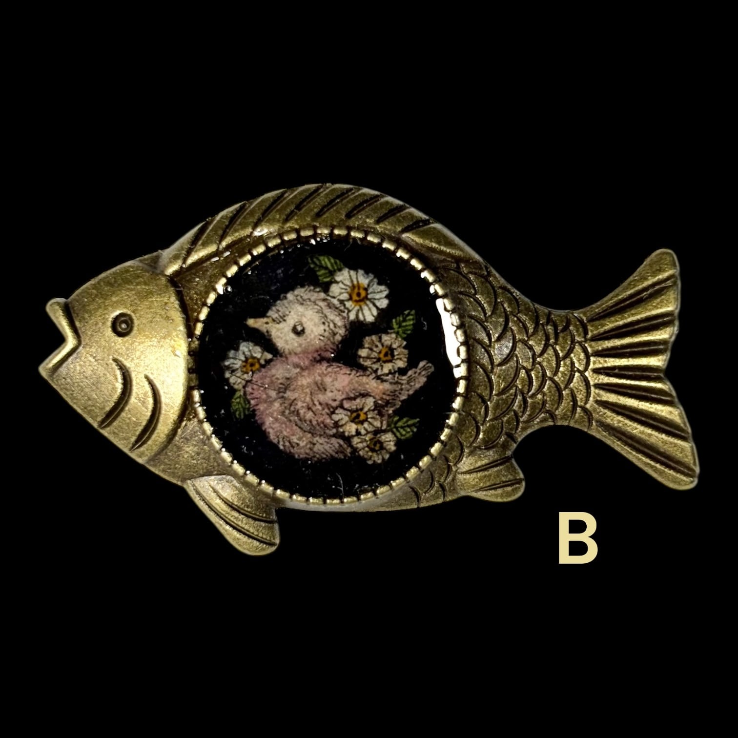 掌サイズのミニ原画を閉じ込めたブローチです。